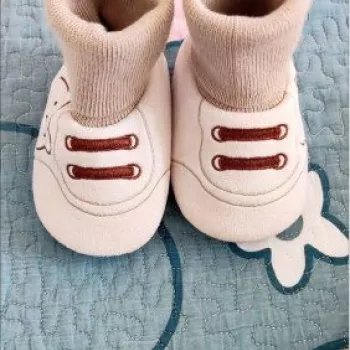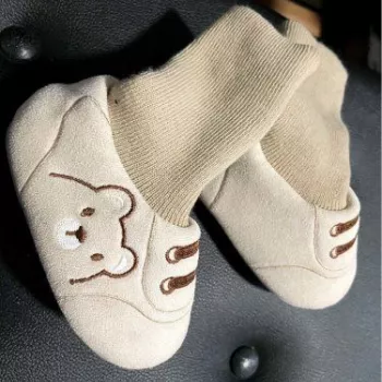 These beige sock shoes are a delight! Perfect for my 18-month-old who's currently a size 5.5, they're slightly big but offer room for growth. They function like ankle socks with added cushioning and rubber soles, providing comfort and safety. I love their utility in indoor playgrounds and how well they complement modern baby outfits. The bear design is cute, although I plan to hand wash them for durability. My toddler adores them, and so do I!