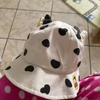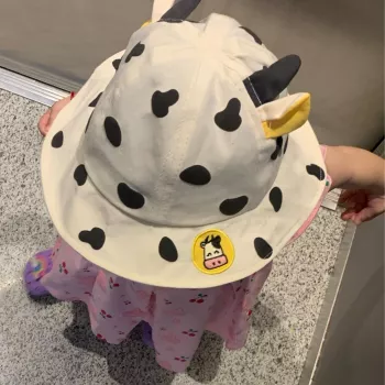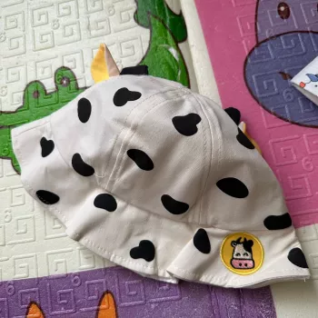 My child absolutely adores this hat! It has quickly become a favorite accessory in our household. The design features an endearing cow pattern that my kiddo can't get enough of. It's not just the cute and playful design that won him over, but also the fit. I must give a thumbs up for its quality as well; it seems durable and able to withstand the rough and tumble playtimes typical of children his age. Plus, whether he's playing outdoors or simply running around indoors, this hat provides adequate protection from sun rays while adding a fun element with its adorable cow print. The cow pattern is incredibly charming and brings joy not only to my child but also everyone who sees him wearing it.