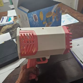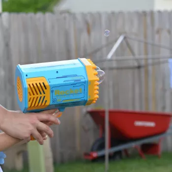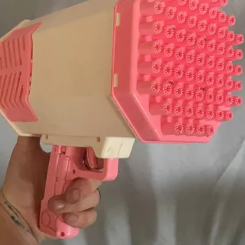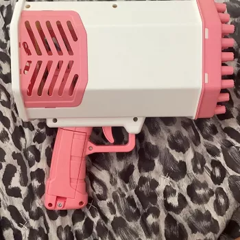 Love this bubble gun! Got it for fun and for photos, and it really does blow a lot of bubbles. Definitely recommend it. Great as a gift for a kid, or just for fun at the beach or backyard. Just remember to buy more bubble solution as it only comes with two small bottles and goes fast. Also, find something to store it in as it can get a bit messy. Works great overall!