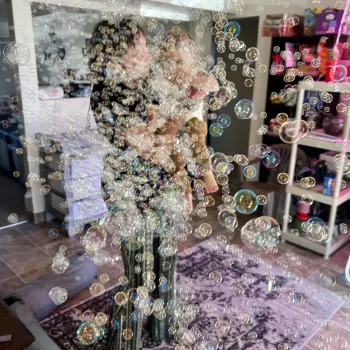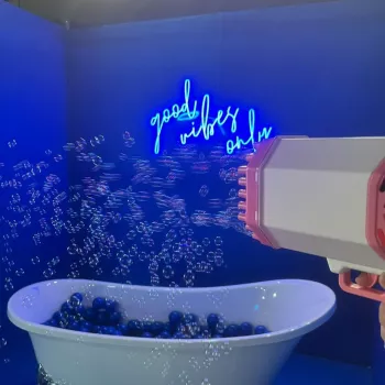 I bought this Bubble Gun for our Selfie Studio and it's been a fantastic addition! We've been letting our customers use it in one of our selfie booths, especially the one with a bathtub setup. It's just awesome how well the bubbles work with this gun. It's like a Bubble Mania every time someone uses it! I'd totally recommend it for both indoor and outdoor activities. Both kids and adults love it – it's a hit with everyone!