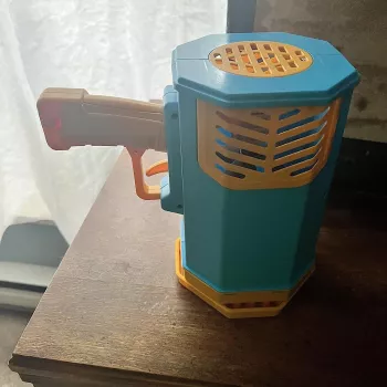 This bubble gun is pretty amazing. It produces a ton of bubbles. It's light but breaks easily. I'm still figuring out the best bubble solution to use with it. It's really fun, although the solution that came with it smells more like a cleaning product.