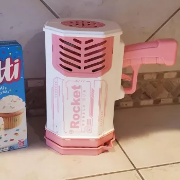 I love how it produces a lot of bubbles and lasts a long time. The downside is that it doesn't hold the bubble liquid inside. You have to dip it in a bigger bowl and then press the button. But it's great for clustering small bubbles.