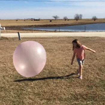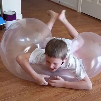 This bubble ball provides endless hours of play and excitement for all ages. I purchased it for our 9 yr. old granddaughter. She plays with it all the time and keeps it in a safe place. She plays inside and outside with it. It's a has a nice feel to it and is very buoyant.