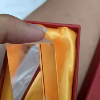 The item was very well packaged and arrived earlier than expected. The sturdy box it came in is of great quality. The prism itself is of excellent quality and produced beautiful rainbows as expected. It's definitely a valuable addition to our science teaching materials.